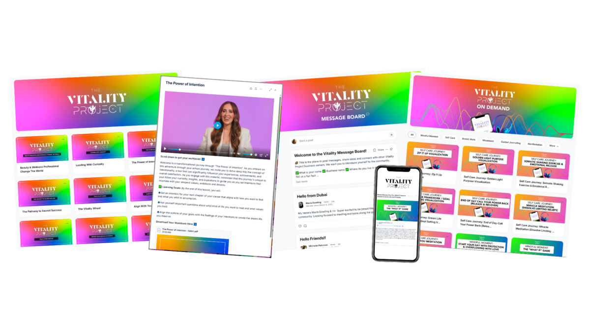 In addition to the amazing lessons The Vitality Project also includes done for you templates and guides walking you through how to run Vitality meetings, engage with your team, bring on new hires and even host your own team retreats